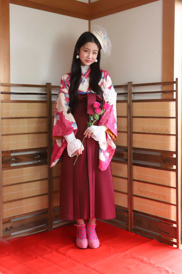 レトロな着物とカラフルな袴に